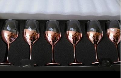 SET DE 6 COPAS DE VINO ENCOBRIZADAS EN CAJA NEGRA PREMIUM